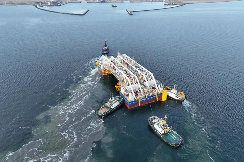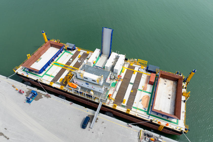 Fire til fem slæbebåde transporterer elementet, der holdes af pontonerne, til nedsænkningspunktet. Pontonerne holder ikke kun elementerne oven vande, men bidrager også til at nedsænke dem kontrolleret. For at gøre dette med høj præcision er der spil om bord med over 200 kilometer stålwire samt et kontrolrum, hvorfra nedsænkningen styres med ekstrem præcision.