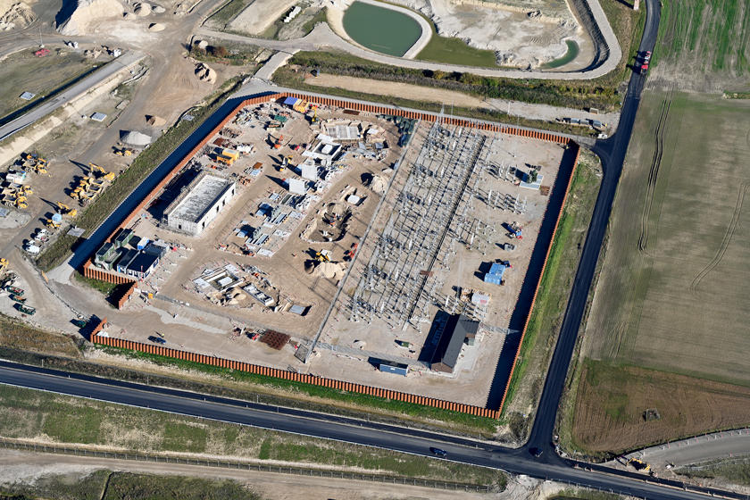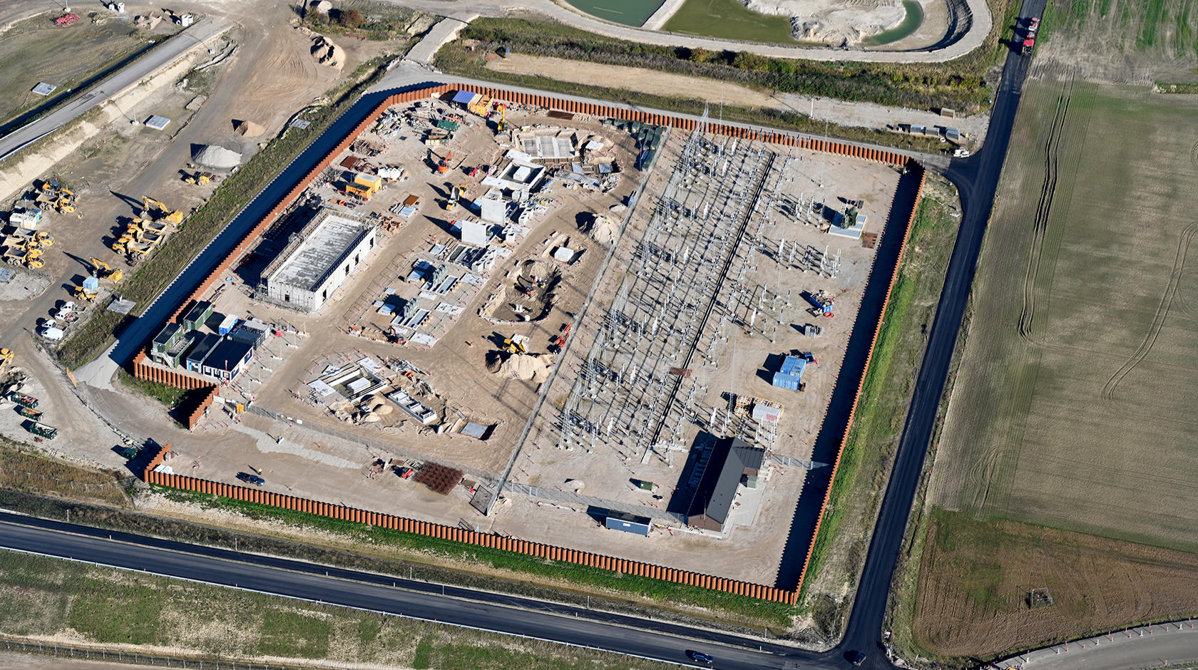Projektets entreprenør Elecnor er derfor i fuld gang med at etablere en transformerstation inden for spunsvæggene ved siden af Energinets anlæg.