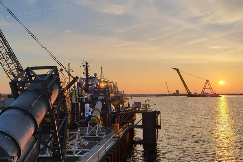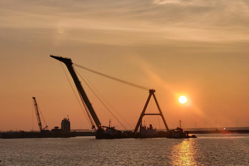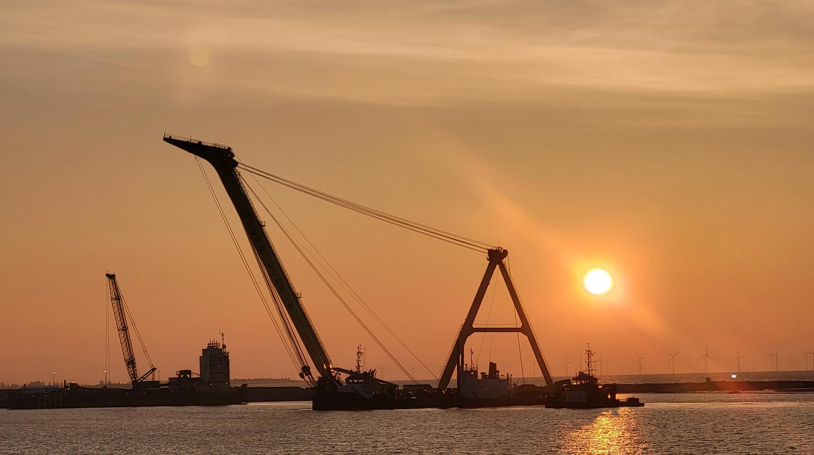 Flydekranen skal placere de enorme ankre på havbunden, som nedsænkningsfartøjet IVY skal fastgøres til med lange stålwirer i forbindelse med nedsænkningen af det første tunnelelement til foråret.