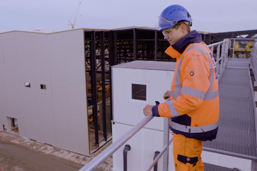 ”Jeg har siden sommer arbejdet på fabriksbyggepladsen i Rødbyhavn, og jeg har indtil videre været med til at opsætte blandingsanlæggene til betonproduktion. Det har været en hel unik opgave at være en del af”, siger Andreas Madsen.