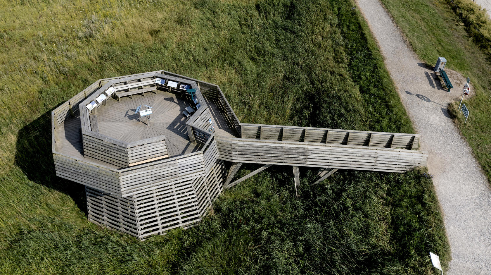 Herfra vil besøgende kunne følge med i udsejlingen af tunnelelementerne samt byggeriet af tunnelportalen og den kommende vej- og jernbaneforbindelse ind i landet.
