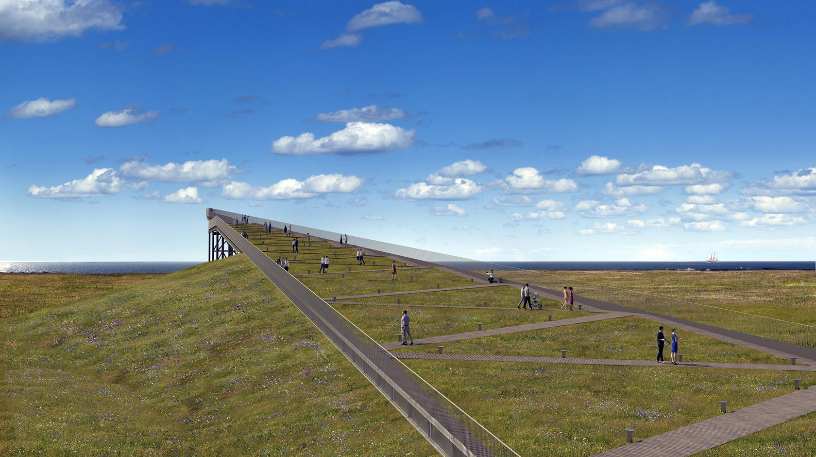 Fra Pilen vil besøgende kunne følge med i udsejlingen af tunnelelementer og byggeriet af tunnelportalen. Projektet indebærer også en ny rampe og adgangssti fra den eksisterende platform på Gl. Badevej.