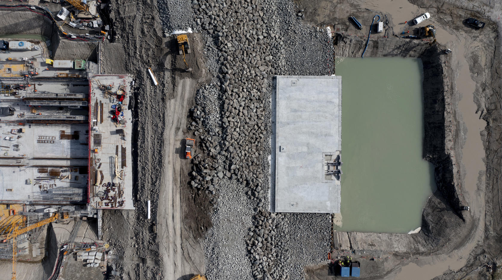 Vi kan nu meddele, at vi er færdige med at anlægge det nye 200 meter lange dige over tunnelportalen. Derfor kunne vi i påsken så småt begynde at lukke vandet ind i den forreste del af portalområdet. Når vandstanden på begge sider er ens, kan vi begynde at fjerne det ydre, midlertidige dige. Og snart vil den forreste del af tunnelen være helt dækket af vand.