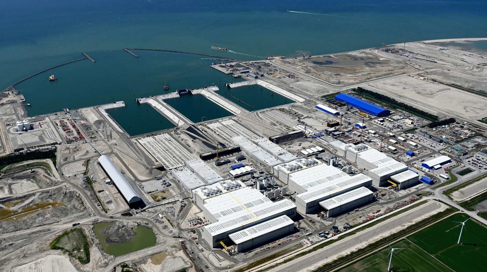 Arbejdet til søs begyndte i juni 2020 med etablering af arbejdshavn og det nye ydre dige.