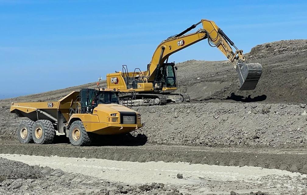 Auf der deutschen Baustelle wurden zeitweise bis zu 730.000 Kubikmeter Aushub aus dem Tunnelgraben gelagert. Ein Drittel des großen Berges im Nordosten unserer Baustelle ist mittlerweile schon wieder abgetragen. Das Material aus dem Tunnelgraben wird an Land als Baumaterial wiederverwendet, etwa für die Rampen der künftigen Autobahn, aber auch für die seitliche Verfüllung und das Abdecken des landseitigen Tunnels.