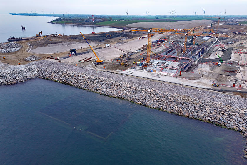 Worauf Laubenstein jedoch besonders stolz ist, ist dieses Tunnelstück, das ins Wasser ragt. Nachdem die Nachricht die Runde gemacht hatte, dass das erste Tunnelstück auf deutscher Seite unter Wasser liegt, hätten viele Menschen vermutet, dass bereits ein Tunnelelement abgesenkt worden sei. „Dann erkläre ich, dass wir noch kein Tunnelelement abgesenkt haben, dass wir aber sowohl auf dänischer als auch auf deutscher Seite einen Teil des Fehmarnbelt-Tunnels direkt in der Portalbaugrube bauen. Wir Ingenieure sprechen dabei von einem Tunnel in offener Bauweise‘.“ Dabei handelt es sich um eine Art Anschlussstück für das erste Absenktunnelelement. „Mit diesem an Land gebauten Tunnelstück, das nun zum Teil unter Wasser liegt, wird später das in der dänischen Elementfabrik gefertigte erste Tunnelelement angebunden“, erklärt Laubenstein.