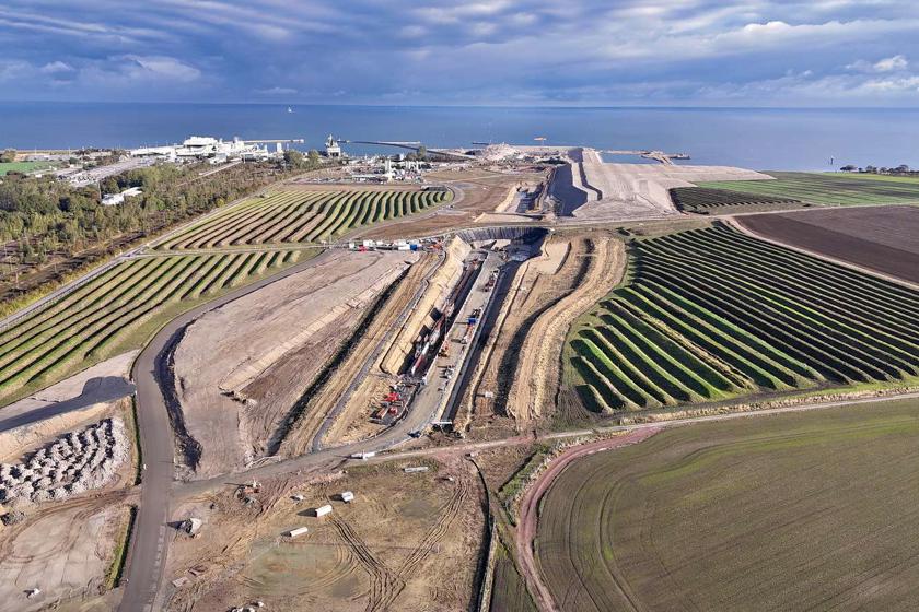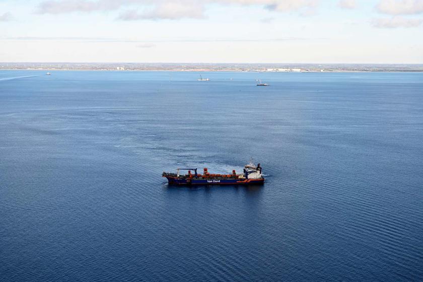Mehr als 95 Prozent der Aushubarbeiten für den 18 Kilometer langen Tunnelgraben sind bereits abgeschlossen. Die Landgewinnungsarbeiten vor der Küste Lollands sind in vollem Gange, rund 300 Hektar neues Land entstehen dort.