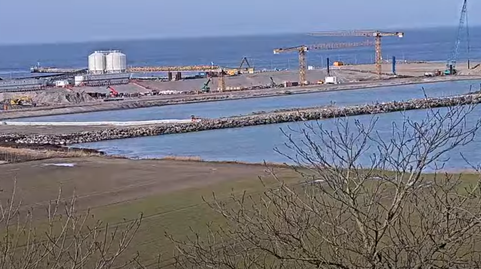 Neuer Livestream: Nahe Puttgarden überträgt jetzt eine Webcam Bilder von der deutschen Tunnelbaustelle. So können alle Interessierten das Geschehen auf der Baustelle auch aus der Ferne verfolgen. Die Webcam schwenkt langsam über die verschiedenen Bereiche der Baustelle und erlaubt damit einen Blick auf den Bau der Brücken für die Zufahrt in den Tunnel und die laufenden Arbeiten im Bereich des Tunnelportals.