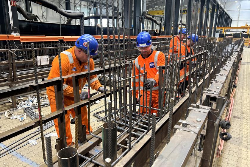 The work is so critical for the construction that in 2023, it was decided to erect a separate factory hall on the construction site to supply the element factory and portal construction with steel in the right quantities and quality.